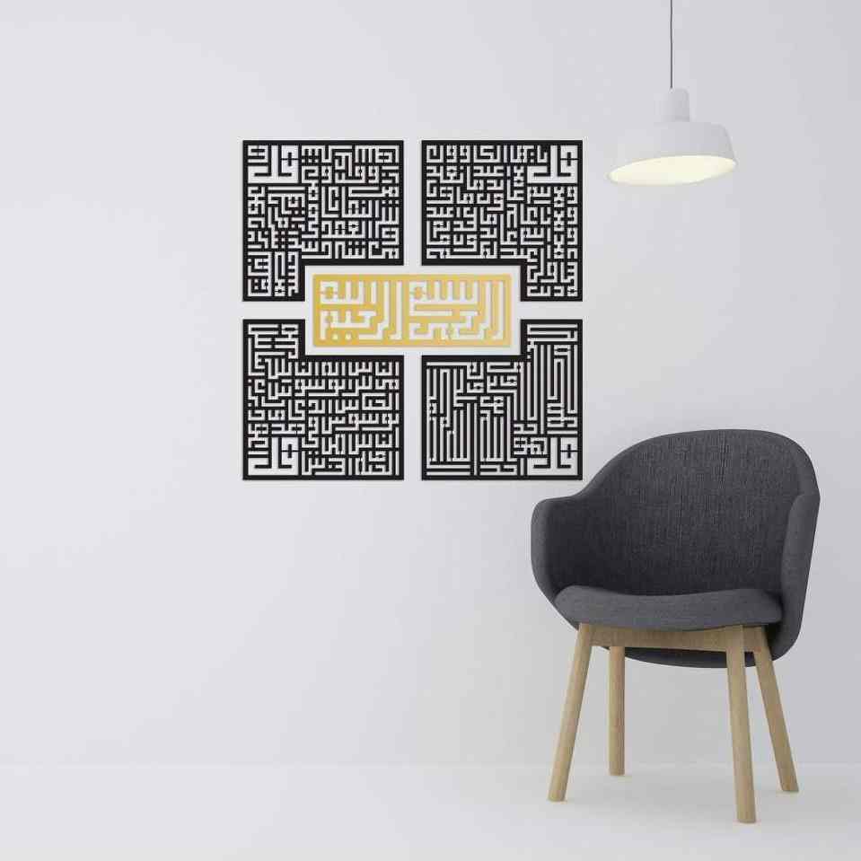 4 قلس كوفي بسم الله، سورة الفلق، الناس، الإخلاص، الكافرون لوحة جدارية إسلامية أكريليك