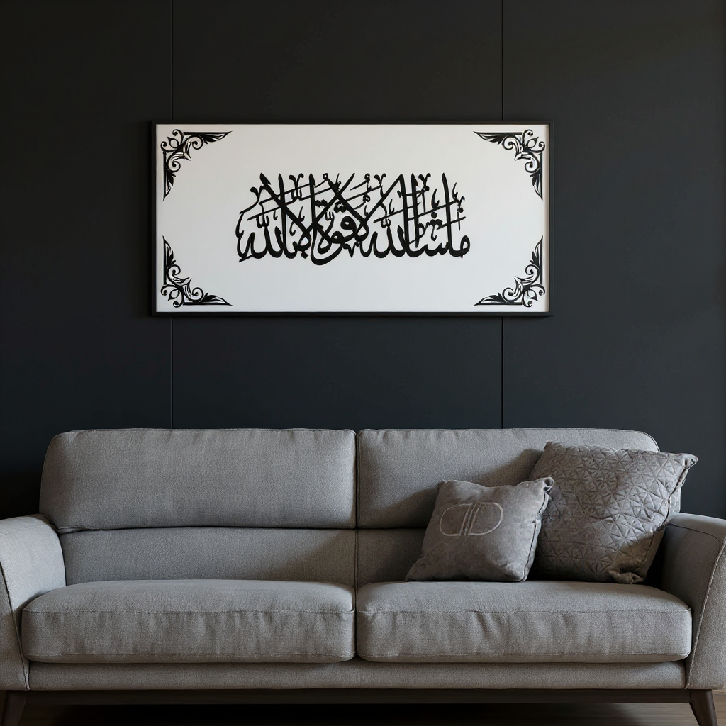لوحة جدارية ثلاثية الأبعاد جميلة مؤطرة تحمل عبارة "ما شاء الله".