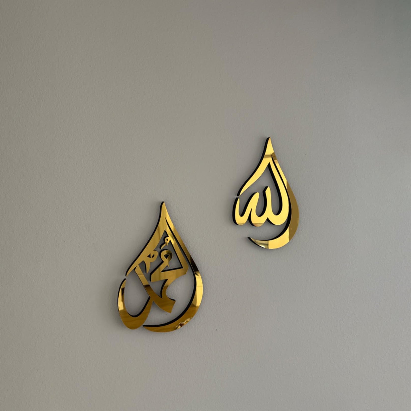 مجموعة من قطعتين: الله ومحمد في شكل قطرة