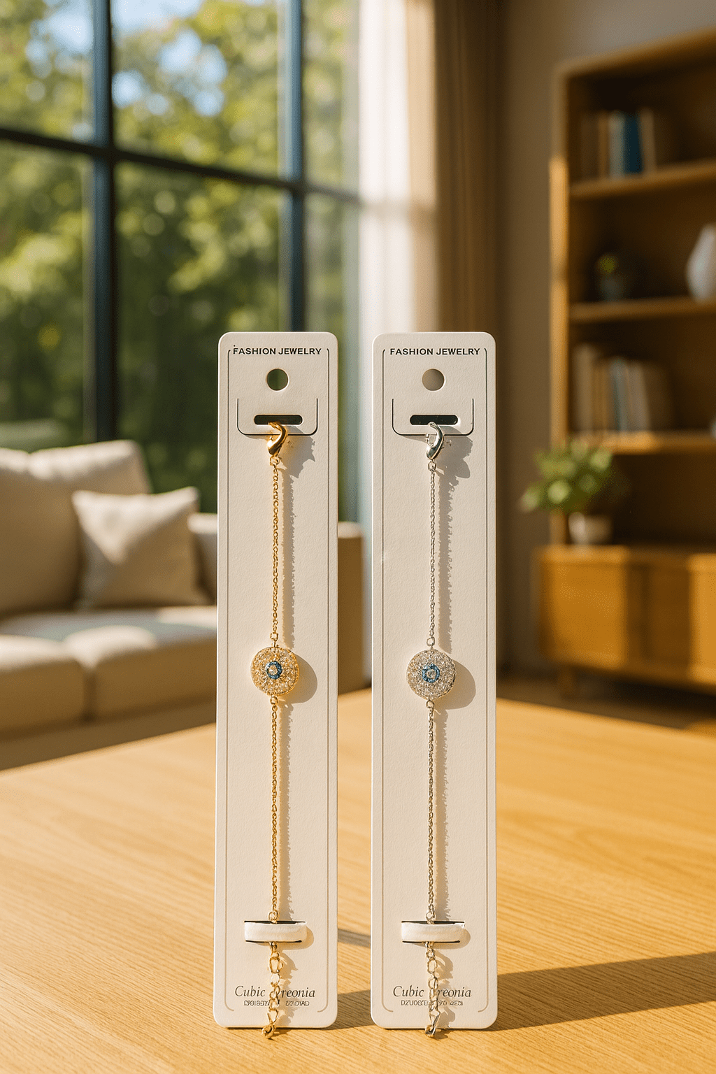 A stylish round charm with a turquoise center symbolizing protection and positivity. - 💎 Cubic Zirconia Sparkle