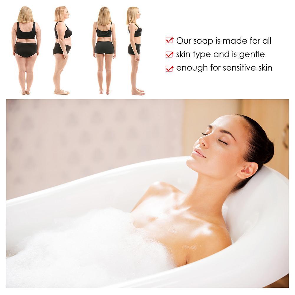 Antibacterial, anti-inflammatory, and acne/acne control, our soaps add radiance to your skin, tighten pores, eliminate dark spots and scars to match your skin tone.