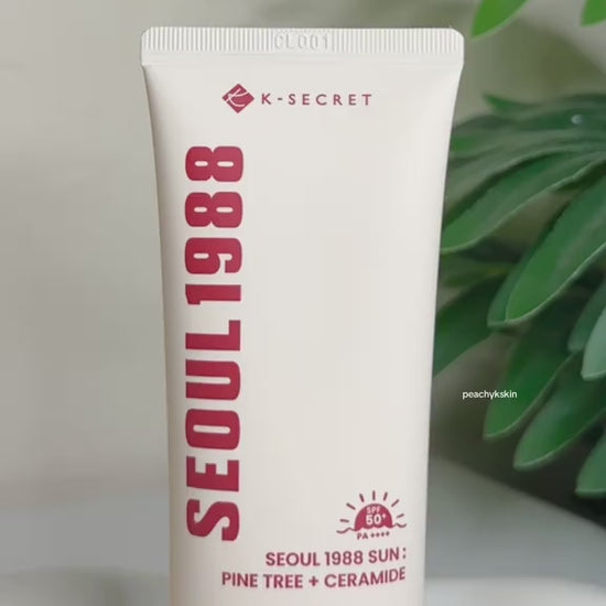 K-SECRET SEOUL 1988 Sun: Pine Tree + Ceramide – A high-protection SPF 50+ PA++++ sunscreen that soothes and strengthens skin with pine extract and ceramide.