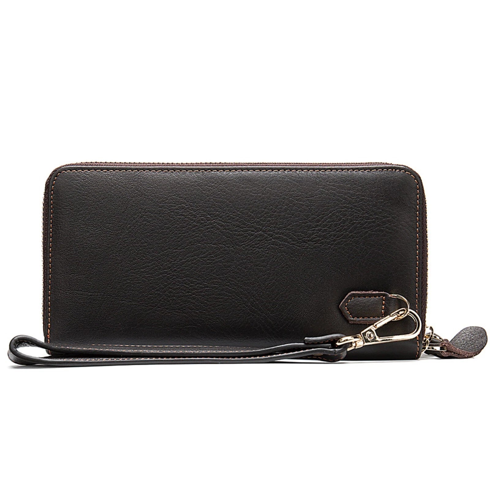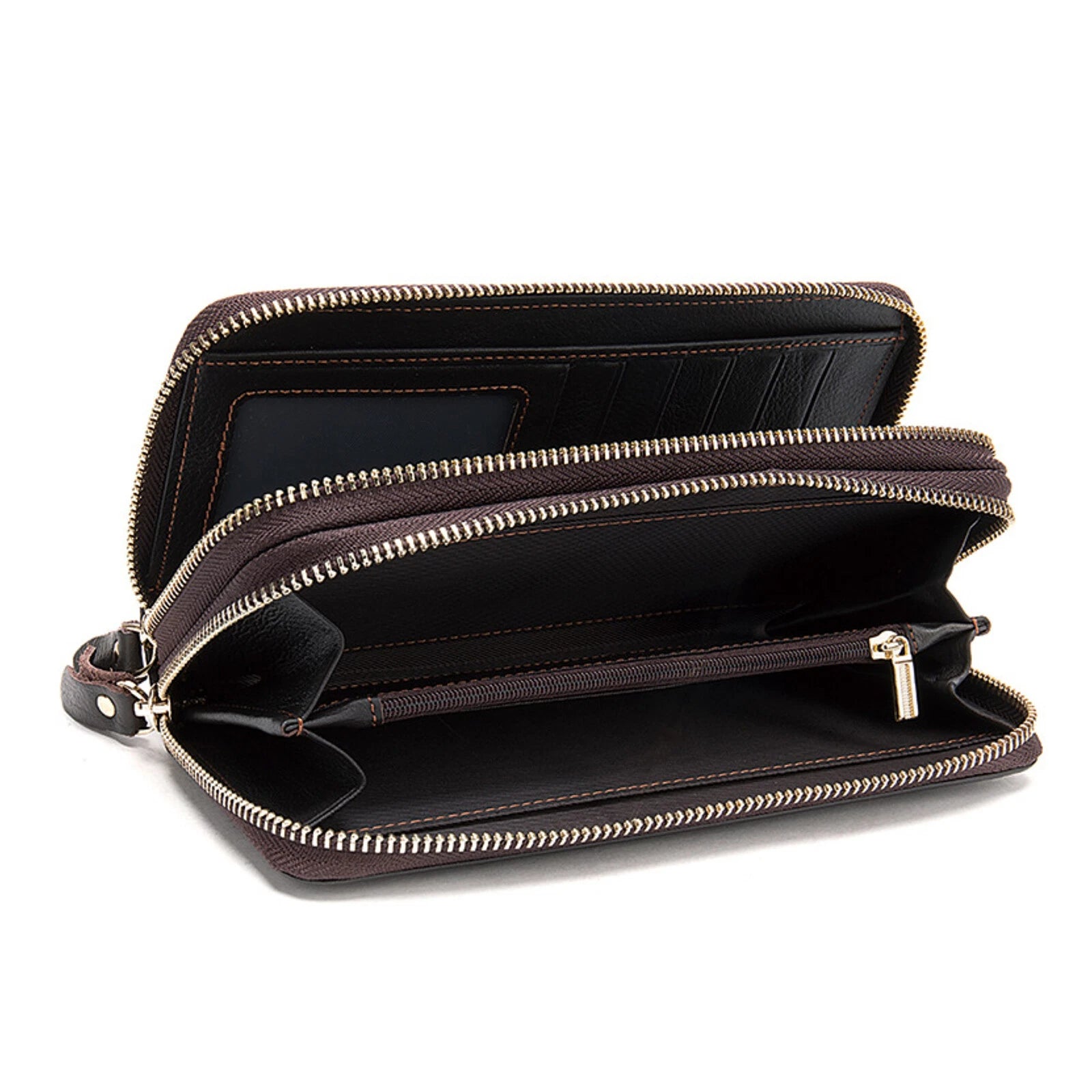 Men's Double Zipper Wallet Long First Layer Cowhide Large-capacity Handbag